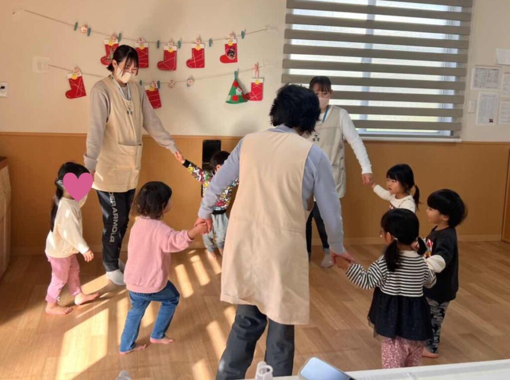 クリスマスの体操をした後に、いつも公園でやっている「とんとんとん何の音?」の遊びをしました✨