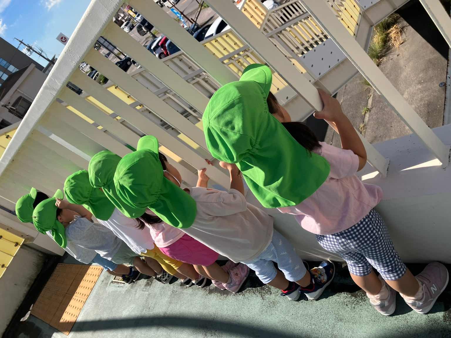 前回と同様、歩道橋の階段の手すりを持って慎重に登っていました◎上手に登ることができていましたよ😌