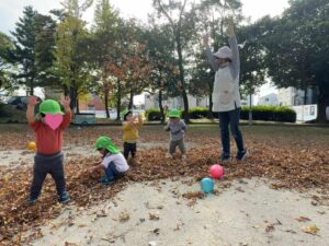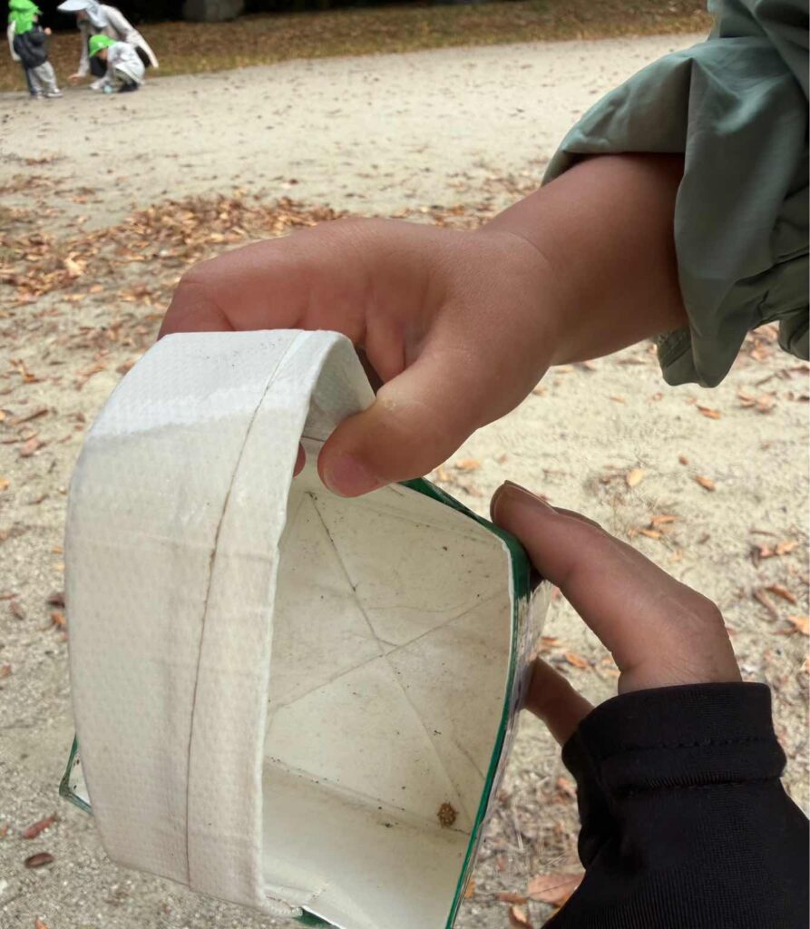 先生が「どうぞ〜」と言うと嬉しそうに自分の箱に入れたり、お友だちに渡してみたり🤭🍂