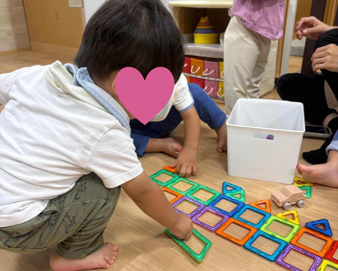 マグフォーマーをシートにつけてたり、床で並べたりして形を作って遊んでいます🎶