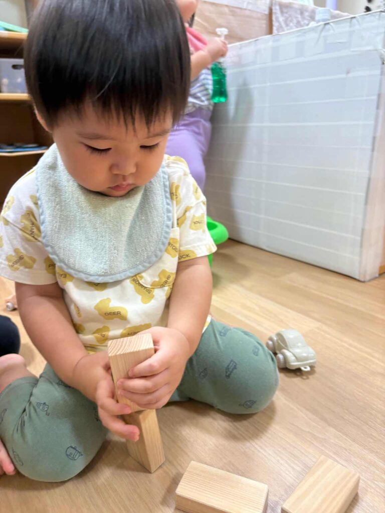 立方体の積み木よりも細いので、高く積むのは難しいのですが、挑戦する姿が見られましたよ☺️